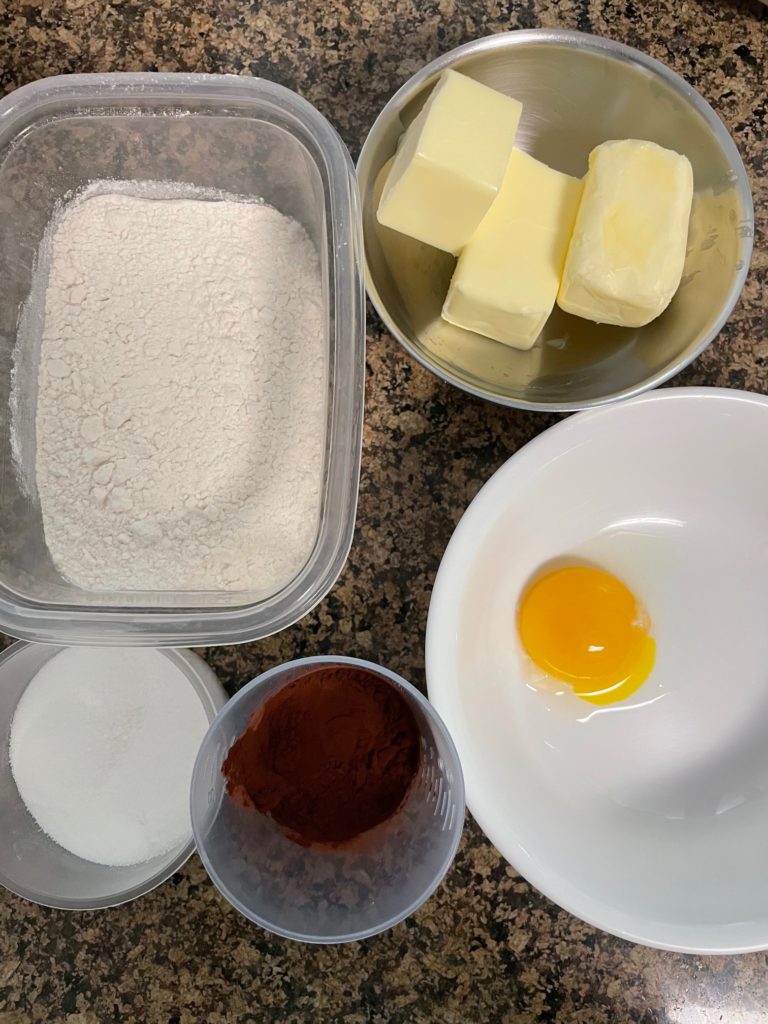 - Knead dough into two doughs – one for butter cookie and another one for chocolate cookie.